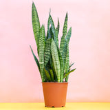 אפריקאית, גבוהה, אלגנטית, ואלף שמות לה: סנסיווריה (צריך להתרגל) צמח הנחש (התחממנו) לשון החותנת (פחות פמיניסטי וזה לא קול). מטהרת אוויר טבעית. בגרסה הזו העלים בגוונים ירוקים מעלפים. |